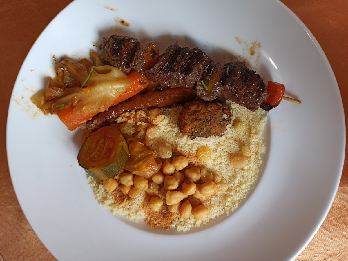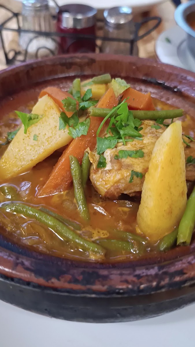 Very good Moroccan food. The very nice and beautiful lady will have you take more cake. The man who cooks come serve the tea. Very nice atmosphere and good prices.